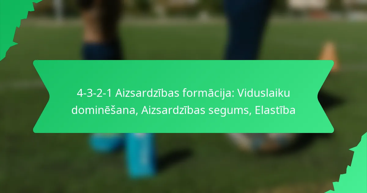 4-3-2-1 aizsardzības formācija ir taktiska izkārtojuma forma futbolā, kas uzsver spēcīgu viduslauka klātbūtni un stabilu aizsardzības segumu. Šī formācija sastāv no četriem aizsargiem, trim viduslaiku spēlētājiem, diviem uzbrūkošajiem viduslaiku spēlētājiem un viena uzbrucēja, ļaujot elastību gan aizsardzībā, gan uzbrukumā.