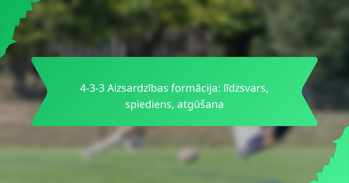 4-3-3 aizsardzības formācija ir taktiska pieeja futbolā, kas līdzsvaro spēcīgu vidējo līniju ar stabilu aizsardzību un dinamisku uzbrukumu. Novietojot četrus aizsargus, trīs pussargus un trīs uzbrucējus, komandas var efektīvi spiest uz pretiniekiem, vienlaikus nodrošinot ātru atgūšanos, zaudējot bumbu. Šī formācija ne tikai uzlabo aizsardzības stabilitāti, bet arī veicina plūstošu pāreju starp uzbrukumu un aizsardzību, ļaujot koordinētām spiediena stratēģijām traucēt pretinieka spēli.