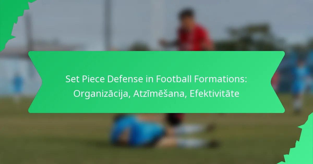 Set piece aizsardzība ietver taktiku un formācijas, ko izmanto, lai novērstu vārtu gūšanu mirušās bumbas situācijās. Šie momenti var būtiski ietekmēt spēles iznākumu, jo tie bieži noved pie augstas kvalitātes vārtu gūšanas iespējām. Labi izpildīta aizsardzība var novērst pretinieka centienus un saglabāt komandas konkurētspēju.