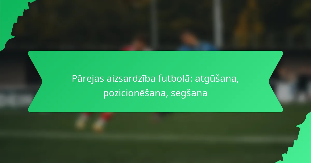 Pārejas aizsardzība futbolā ir būtiska, lai ātri atjaunotu aizsardzības organizāciju pēc bumbas zaudēšanas. Šī stratēģija uzsver atjaunošanos, pozicionēšanu un segšanu, lai samazinātu pretinieku iespējas gūt vārtus kritiskajos brīžos. Ātri pārvietojoties un sazinoties, komandas var efektīvi pretoties uzbrukumiem un saglabāt aizsardzības integritāti.